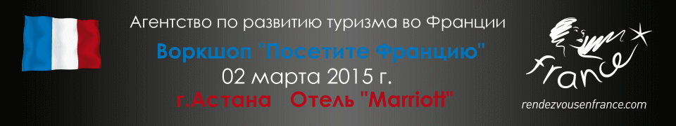 | Понедельник, 02 марта 2015г. г.Астана Hotel Marriott Astana 5* ул.Достык 2 10:30 Регистрация 11:00 Презентация туристических возможностей регионов и Партнеров 11:30 Воркшоп 14:00 Обед При поддержке Авиакомпании “Air Astana” |