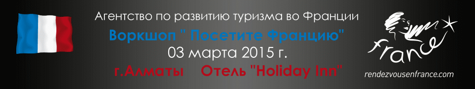 | Вторник, 03 марта 2015г. г.Алматы Hotel Holiday Inn 4* ул.Тимирязева 2Д 14:30 Регистрация 15:00 Презентация туристических возможностей регионов и Партнеров 16:00 Воркшоп 18:30 Коктейль При поддержке Авиакомпании “Air Astana” |